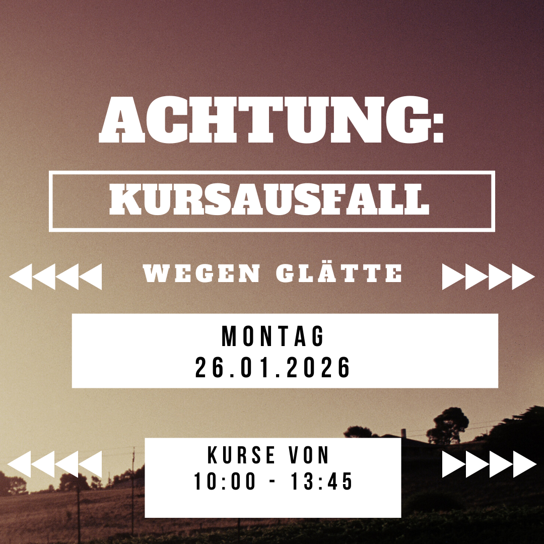 bitte achtet immer auf die Aushänge, zwecks Kursausfall.