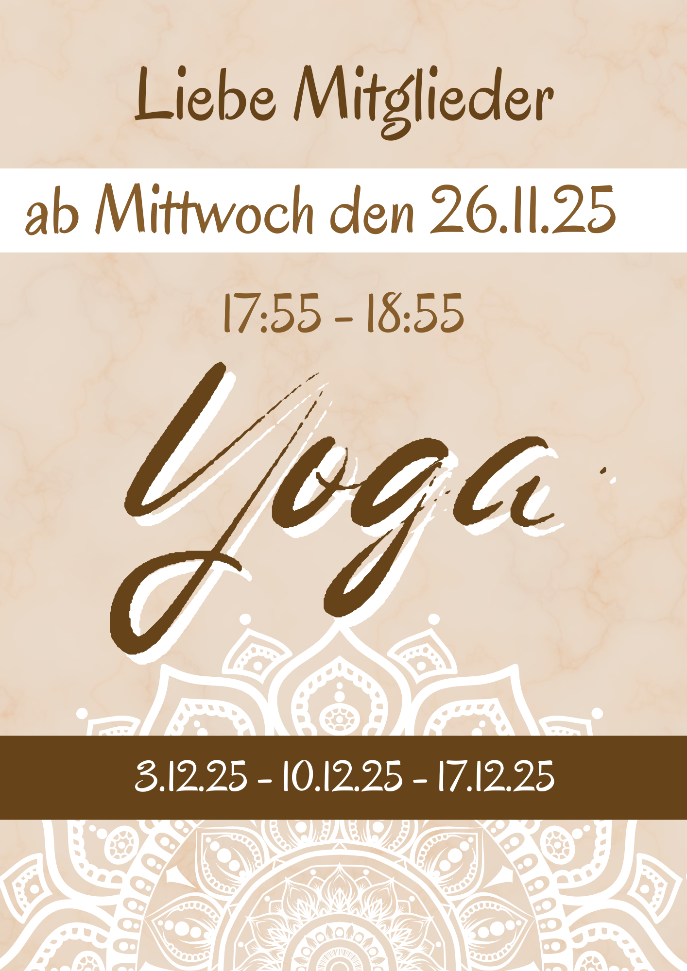 Bis auf Weiteres fällt, auf Grund von Krankheit, Yoga am Mittwoch aus.